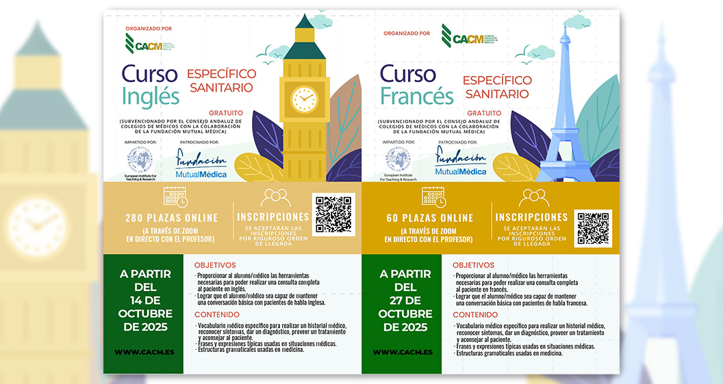 Organizados por el Consejo Andaluz de Colegios Médicos El Consejo Andaluz de Colegios de Médicos (CACM), con la colaboración de la Fundación Mutual Médica y en colaboración con el European Institute for Teaching and Research (EITR), ha puesto en marcha dos nuevos cursos de idiomas (inglés y francés) específicos del ámbito sanitario dirigidos a médicos […]