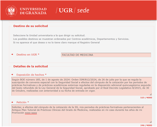 Solicitar, a efectos del cómputo de la cotización de la SS, mis periodos de prácticas formativas pertenecientes al Antiguo Plan Tutorial de Prácticas Clínicas del Grado de Medicina, realizadas en mi caso durante los años de mi Promoción XXXX-XXXX.