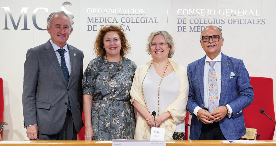 En la rueda de prensa participaron los doctores Tomás Cobo, presidente de la OMC; Cristina Avendaño, presidenta de FACME; Pedro Hidalgo, coordinador del Observatorio de la Prescripción de la OMC; y M.ª Isabel Moya, vicepresidenta primera de la OMC, quienes han explicado las distintas alegaciones presentadas al Ministerio de Sanidad con relación al anteproyecto de ley.