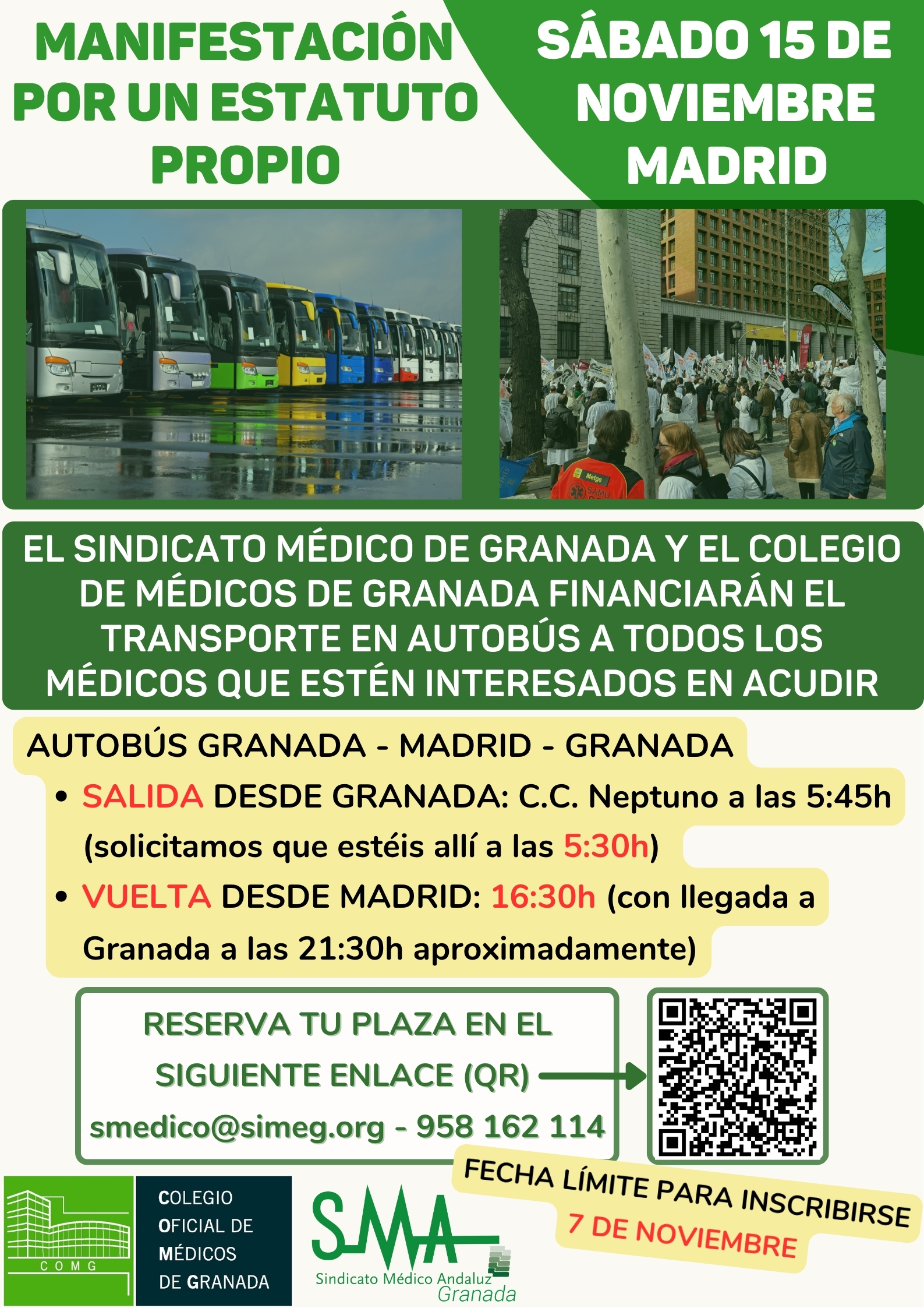 El Colegio de Médicos de Granada y el Sindicato Médico de Granada se suman a esta protesta y ponemos a disposición de los colegiados autobuses para el desplazamiento a Madrid.